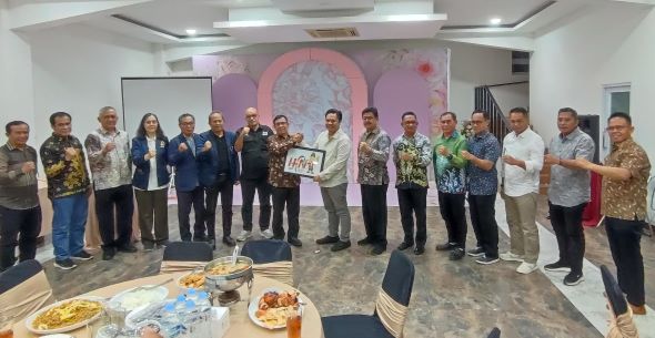 Soft Launching HPN 2025 ditandai dengan penyerahan foto logo dan maskot HPN dari Ketum PWI Hendry CH Bangun kepada Sekdaprov Roy Rizali Anwar.